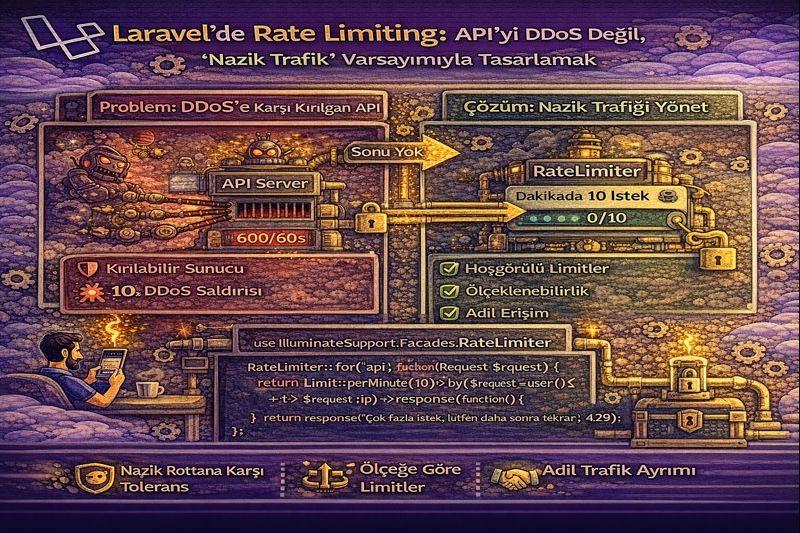 Laravel’de Rate Limiting: API’yi DDoS Değil, “Nazik Trafik” Varsayımıyla Tasarlamak