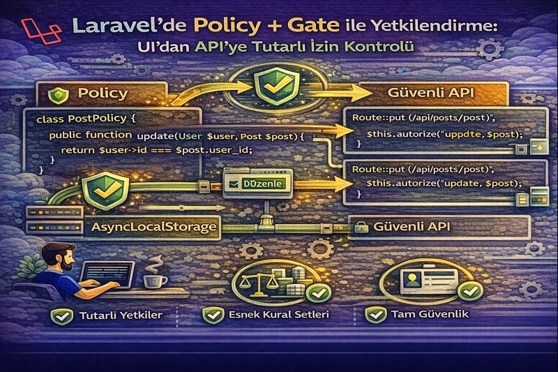 Laravel’de kimlik doğrulama (auth) çoğu projede hızla oturur; asıl sorun yetkilendirme (authorization) tarafında çıkar: aynı kuralın hem Blade’de, hem Controller’da, hem API endpoint’inde tekrar edilmesi… Bu tekrar, güvenlik açığı ve bakım maliyeti demektir.