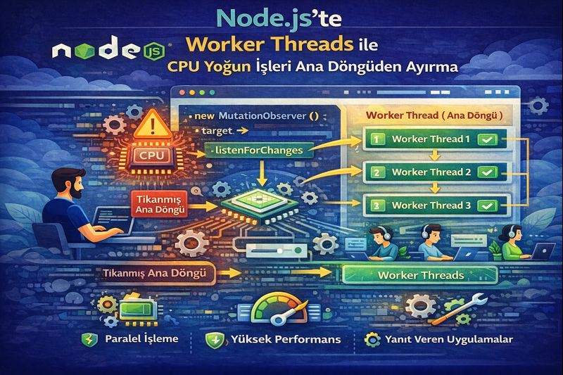 CPU yoğun işlemleri Node.js event loop’tan ayırıp Worker Threads ile daha akıcı uygulamalar geliştirin.