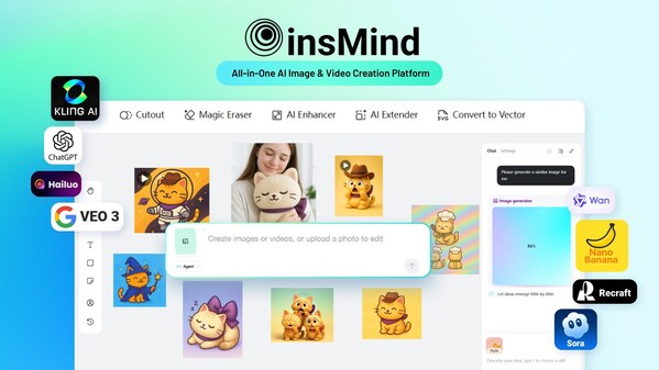 From a single prompt, create AI-generated images and videos in one seamless flow—faster and easier than ever. SINGAPORE, Nov. 25, 2025 /PRNewswire/ -- insMind, an AI-powered platform for image and video creation, today announced the launch of insMind AI Agent, a feature designed to simplify and scale visual creation. With one prompt, users can instantly generate images, videos, and other visual tasks within a seamless production flow. insMind AI Agent: create AI-generated images and videos in one canvas Inside insMind: How the AI Agent Simplifies Visual Creation Effortless Chat and Creation in One CanvasinsMind integrates image generation, editing, and video creation into a unified workflow. Through live chat, the AI Agent interprets prompts, clarifies direction, organizes ideas, and provides suggestions. Users can refine, compare, and animate visuals in the same space, ensuring a smooth creative experience. Edit, Refine, and Explore Without LimitsWithin insMind Canvas, every visual is editable and expandable. Users can adjust text, layout, colors, and styles, generate similar images or variations, and refine videos directly through chat. This enables continuous exploration as ideas evolve. Top AI Models, Smarter ExecutionAI Agent brings together leading AI video and image models, including GPT-4o, Nano Banana, Recraft, Sora 2, VEO 3, Wan 2.5, Hailuo, and Kling AI—in one platform. It analyzes each prompt to identify intent and automatically triggers the correct model, streamlining workflows and reducing manual steps. Ready-Made AI Templates for Real NeedsinsMind offers 100+ AI templates across e-commerce, social media marketing, and product design. Users can upload images, update prompts, and quickly generate professional visuals aligned with practical needs. Generate Product Sets for E-commerceAI Agent also creates consistent product sets tailored to marketplace standards. By analyzing reference images and trending styles on platforms like Amazon, it produces visuals that match size, style, and visual requirements. \"With AI Agent, our goal is to make visual creation as effortless as inspiration,\" said James Miller, Product Manager at insMind. \"From a single sketch and prompt, users can now generate complete image and video campaigns—faster, smarter, and ready for use.\" About insMindinsMind is a Singapore-based AI creative platform that enables users to produce high-quality images and videos in minutes. It unifies advanced AI models to make visual creation faster, simpler, and more accessible worldwide. To learn more, visit https://www.insmind.com/ and https://www.insmind.com/ai-agent/